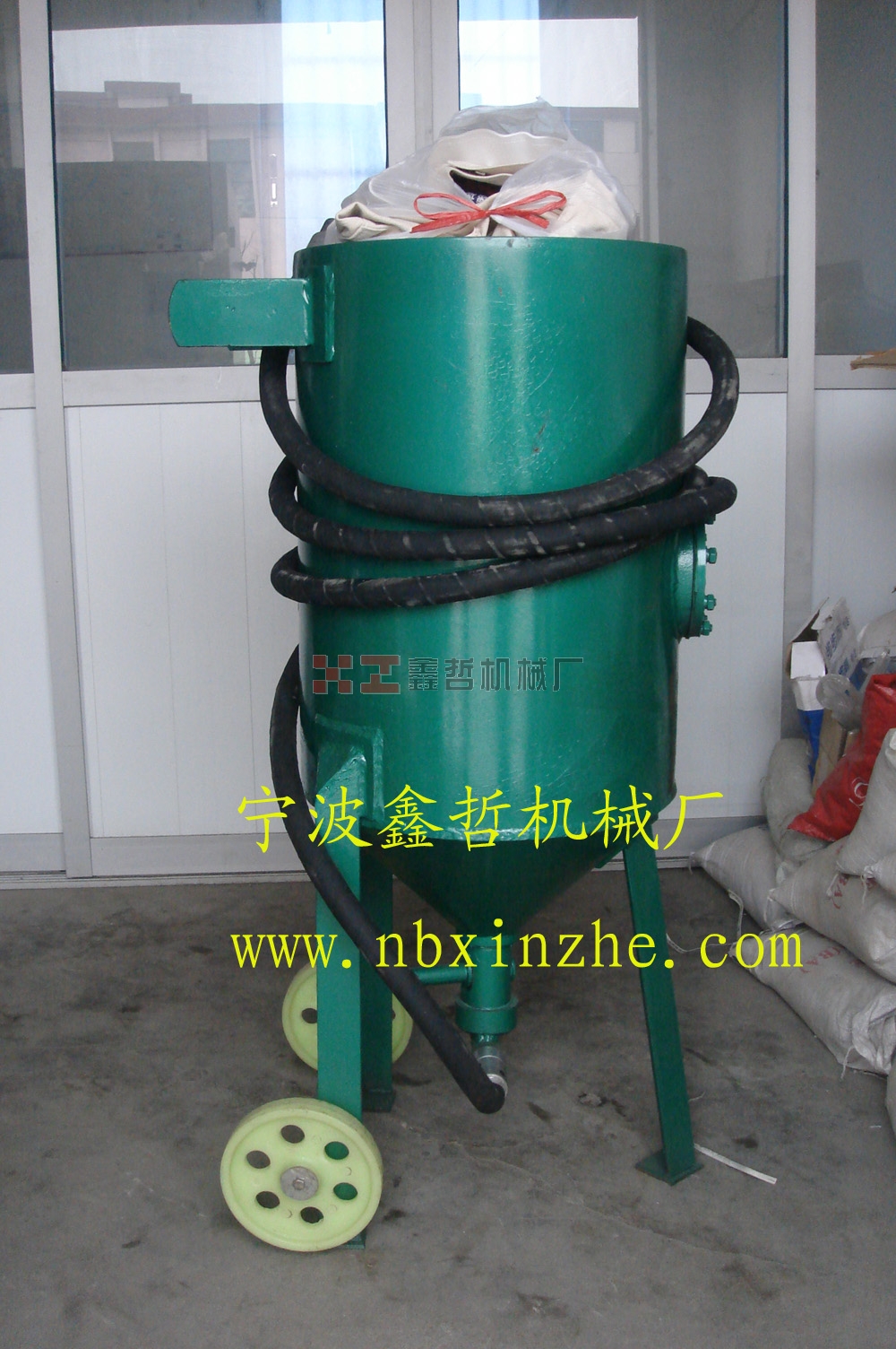 2、噴砂機設(shè)有1只噴槍,噴槍內(nèi)配有8mm大的碳化硼噴嘴。